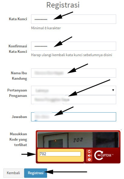 8. Selanjutnya, input kode chapta yang terlihat dengan benar kemudian klik “Registrasi”.